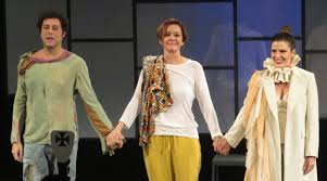 | Pedroca Monteiro, Julia Lemmertz e Georgiana Góes em Simples Assim, direção Ernesto Piccolo. (Foto Victor Hugo Ceccato) |